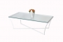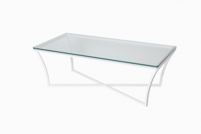 Rectangular Enea coffee table. Clean pure style with double square iron bars. This version with glass table top.