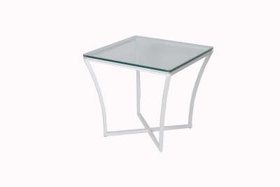 Rectangular Enea side table. Clean pure style with double square iron bars. This version with glass table top.