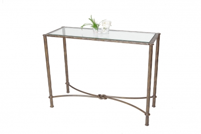 Hermes style hammered iron console perfect to decorate any entrance. With Ligne Metal's siganture knot and glass table top.