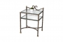 Forged iron bed side table to match the same style bed. Square hammered iron and double glass shelves.