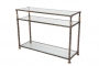 Rectangular console from our Meze range with square hammered iron, hand turned solid brass features and triple glass shelves.