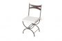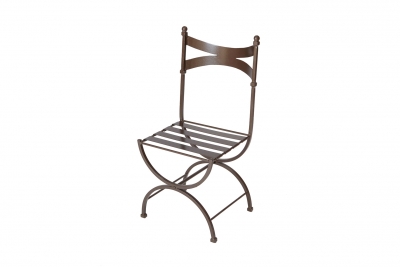 Pompea style dining chair in solid square iron and solid brass features. This version with metal seat and seat back ideal for your terrace or garden.