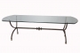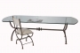 Rectabgular iron dining table with simple lines, square iron and glass table top.