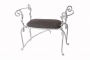 Banquette de prestige en fer forgé plein martelé avec un remarquable travail de volutes et de treisses. Cette banquette au style chic et distinguée s'utilisera parfaitement en bout de lit ou devant une coiffeuse.