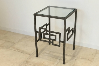 Ce chevet en fer forgé et verre, original et contemporain est le complement idéal du lit Ares.