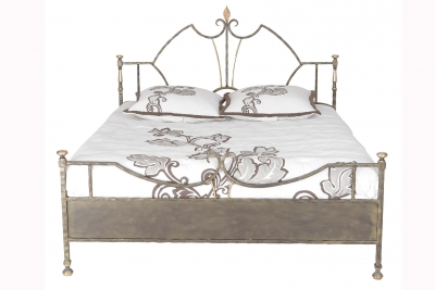 Lit en fer forgé carré martelé avec pieds et pommeaux en laitons. Par son style royaliste, ce lit communiquera une ambiance toute particulière à votre chambre à coucher. A la fois classique et rustique, vous pouvez également le marier avec des meubles en bois.