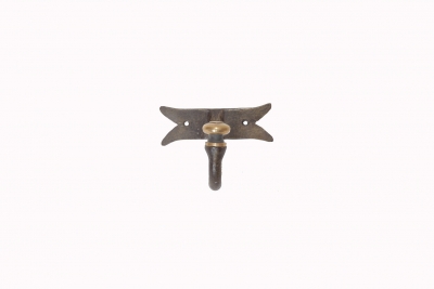 Porte manteau en fer forgé, fer plat lisse avec 1 fer rond centrale et laiton. Il se fera chic et discret dans une entrée et vous servira pour pendre vos manteaux.