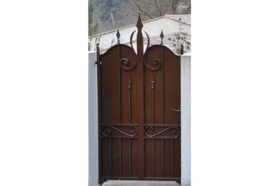 Portillon en fer forgé tôlé assorti avec le portail Artémis.