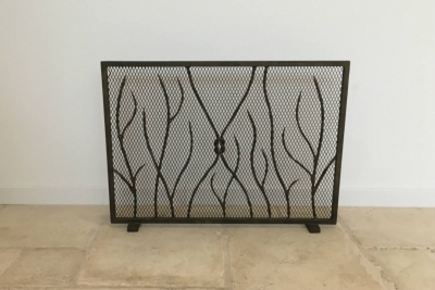 Le style "tout feu tout flamme" de ce pare-feu en fer forgé martelé, sécurisera utilement et harmonieusement votre cheminée.