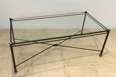La modernité des lignes droites est alors subtilement associée au classicisme de fer forgé. L'ornement du laiton apportera un aspect cossu à votre future table basse.