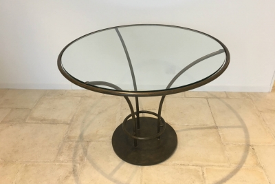 Table bistrot en fer forgé, ronde avec plateau de verre posé. Ce modèle convient aussi bien dans une cuisine que dans un salon . Dans un style classique et sobre, cette petite table plait beaucoup pour son élégance et sa simplicité.