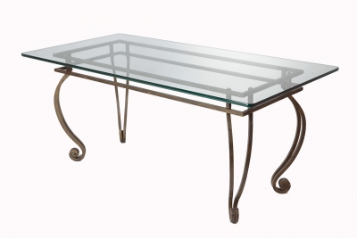 Table de repas en fer forgé avec double fer carré et volutes. Ce modèle légér est très pratique grace à ses 4 pieds. Vous serez à l'aise autour de cette table et pas géner par ses pieds. A la fois moderne et romantique, cette table pourra se marier avec des meuble classiques, moderne ou contemporain.